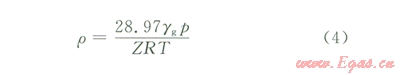 地層條件下的氣體密度為: