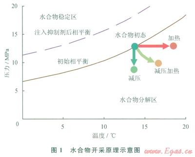 減壓法被認(rèn)為具有比較好的能量效率,即能效比高。但是目前發(fā)現(xiàn)的水合物藏,不能只依靠單一的減壓法而將水合物開采出來。麥索雅哈氣田的水合物減壓開采,多年來也都依靠往水合物層注入熱力學(xué)抑制劑,才得以順利開采部分水合物。加熱法能夠快速分解水合物,但是加熱法的缺點(diǎn)是投入成本高、能效比低。需要指出的是,加熱開采水合物最為重要的作用在于防止二次水合物和冰的形成。注入熱力學(xué)抑制劑法難以采用,其原因除了成本高以外,還因?yàn)闀憝h(huán)境污染,而且對于無流動性底層的水合物,抑制劑無法接近待分解的水合物,難于發(fā)揮其作用。二氧化碳置換開采法工程實(shí)施困難、置換效率也不高,工藝條件也需要進(jìn)一步探索研究。