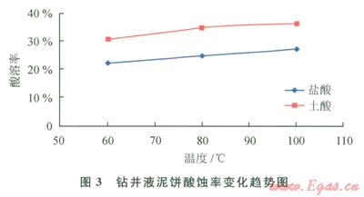 利用酸與巖屑及鉆井液中酸溶性成分反應(yīng)生成可溶性鹽類的原理,用適當(dāng)濃度的酸液溶蝕卡住鉆具的巖屑或泥餅,達(dá)到解卡的目的。圖1、2、3分別是巖屑、鉆井液泥餅的酸溶評(píng)價(jià)實(shí)驗(yàn)。