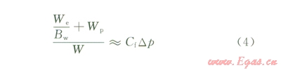 圖1的分析是按孔隙型儲層計算巖石有效壓縮系數得到的。裂縫系統(tǒng)的壓縮系數遠高于孔隙系統(tǒng),根據式(4)可知其極限水侵量占可動水體儲量的比例會更大。另一方面,目前流行的巖石有效壓縮系數計算方法未充分考慮壓力降低后巖石空隙巾高壓流體支撐作用減退的影響。有研究表明,充填不同流體的多孔巖石彈性模量不同,在相同有效應力作用下,充填水的空隙在流體壓力釋放后變形強于氣層[3]。綜合以上分析可知,儲層裂縫發(fā)育的水區(qū)極限水侵量很可能比針對孑L隙型儲層的預測值成倍增大,這是一些與小水體接觸的氣藏開發(fā)過程巾呈現強水侵的原因。