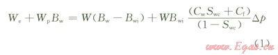 考慮水區(qū)能流動的水體彈性膨脹量、侵入氣藏水量、某些情況下為保護鄰近生產井而在水區(qū)排水泄壓的累積產水量、宏觀均勻分布的小孔隙中束縛水膨脹占據的原可動水體空間,以及地層壓力下降后水層空隙的壓縮效應,有以下關系:
