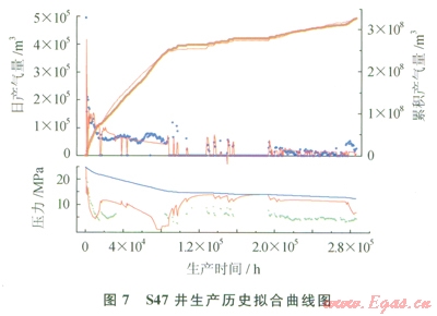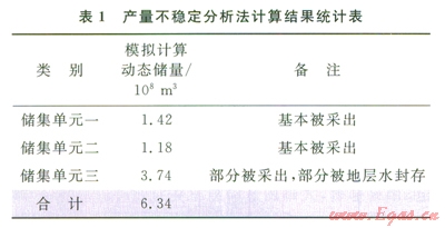 通過前面典型曲線和生產(chǎn)歷史擬合分析,最終確定S47井裂縫系統(tǒng)動態(tài)儲量為6.34×l08m3;(表1)。在儲量模擬計算過程中,可以發(fā)現(xiàn)儲集單元一和儲集單元二的儲量基本被采出,而由于地層水侵的影響,儲集單元三僅部分儲量被采出,絕大部分儲量被地層水封存,是氣藏下一步進行挖潛的主要目標。