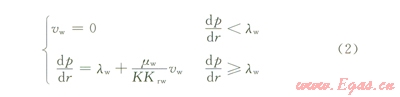 在產(chǎn)水低滲透氣臧的升發(fā)過(guò)程中,由于儲(chǔ)層物性差的特性及產(chǎn)水的影響,在對(duì)氣井儲(chǔ)量評(píng)價(jià)時(shí),如果仍用常規(guī)方法必將導(dǎo)致錯(cuò)誤的結(jié)果。從前人實(shí)驗(yàn)結(jié)果表明:氣體在產(chǎn)水低滲透氣藏巾滲流時(shí),存在啟動(dòng)壓力梯度[1]。為此,筆者在考慮啟動(dòng)壓力梯度及產(chǎn)水的基礎(chǔ)上,并結(jié)合氣藏物質(zhì)平衡法,推導(dǎo)了產(chǎn)水低滲透氣井單井控制儲(chǔ)量的計(jì)算方法。