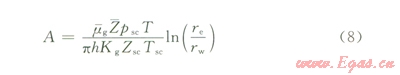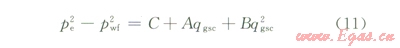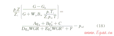 (15)即為低滲透氣藏氣井產(chǎn)水后的考慮水氣比的穩(wěn)態(tài)產(chǎn)能方程式。當(dāng)WGR0時(shí),即氣井不產(chǎn)水時(shí),氣井產(chǎn)能方程式就由式(15)變?yōu)槭?span lang="EN-US">(11)。通過(guò)對(duì)水氣比(WGR)的引入,式(15)更好地表述了氣井產(chǎn)水對(duì)氣井產(chǎn)能的影響,更能準(zhǔn)確地反映在一定地層壓力下,或一定階段氣井的流人動(dòng)態(tài)規(guī)律。