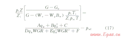 對(duì)于高含共生水的定容封閉氣藏或邊底水不活躍的氣藏,可以認(rèn)為沒(méi)有水驅(qū)的作用,氣井產(chǎn)出的水都來(lái)自地層共生水,“即We0。此時(shí)產(chǎn)水低滲透氣井的單井控制儲(chǔ)量方程就可變?yōu)椋?span lang="EN-US">