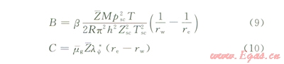 Kg為氣相滲透率,mD;Kw為水相滲透率,mD;lg為氣相啟動(dòng)壓力梯度,atmcm(1atm=98.0665kPa)lw為水相啟動(dòng)壓力梯度,atmcm;lgy,為原始狀態(tài)下的氣相啟動(dòng)擬壓力梯度,atm2(mPa·s·cm)rw 為井筒半徑,cmre為氣井控制半徑,cmmg為氣體的黏度,mPa·smw為地層水的黏度,mPa·s`mg平均地層壓力下氣體的平均黏度,mPa·s;qwsc為標(biāo)況下產(chǎn)水量,cm3;qgsc為標(biāo)準(zhǔn)狀況下產(chǎn)氣量,cm3S;h為氣層厚度,cmb為描述孔隙介質(zhì)紊流影響的系數(shù),稱為速度系數(shù),cm-l;rg為氣體密度,gcm3;rw為地層水密度,gcm3;qgAOF為天然氣無(wú)阻流量,cm3sPi為原始地層壓力,arm;Pe為某時(shí)刻地層壓力,atm;Pwf為井底壓力,atm;Psc為地面標(biāo)準(zhǔn)狀況下壓力,atmye為某時(shí)刻地層擬壓力,atm2(mPa·s)ywf為井底擬壓力,atm2(mPa·s);G為氣井控制儲(chǔ)量,cm3;Gp為氣井累計(jì)產(chǎn)氣量cm3;Zi為原始條件下氣體壓縮因子;`Z為平均地層壓力下氣體的壓縮因子;Zsc為地面標(biāo)準(zhǔn)狀況下氣體的壓縮因子;T為氣層溫度,K;R為氣體常數(shù),82.053atm·cm3(mol·K);We為累計(jì)水侵量,cm3;Wp為累計(jì)產(chǎn)水量,cm3;Bg為氣相體積系數(shù);Bw為水相體積系數(shù)。