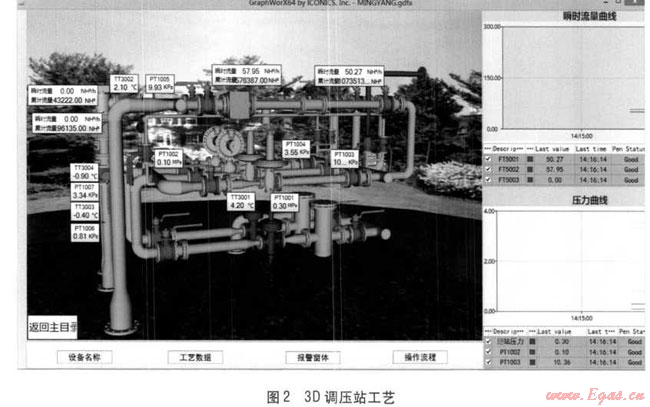 對于站點(diǎn)屬性,主要包括站區(qū)工藝、與干管的對接信息、工藝運(yùn)行狀態(tài)、運(yùn)行數(shù)據(jù)等。本系統(tǒng)通過平面流程和3D工藝模型相結(jié)合的方式提供站點(diǎn)全方位監(jiān)測,提供站點(diǎn)的數(shù)據(jù)日清單報(bào)表、月清單報(bào)表及年度清單報(bào)表,提供區(qū)域所有站點(diǎn)用氣量的時(shí)、日、月、年曲線,提供站點(diǎn)用氣量的歷史曲線。