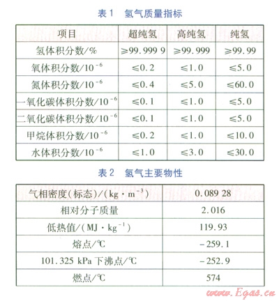 用于氫氣內(nèi)燃機或氫氣燃料汽車的氫氣質(zhì)量指標(biāo)見表1。由于各類燃料電池電動汽車的氫源純度要求不一,為適應(yīng)兼容性,本站加注的氫氣暫按超純氫(氫體積分?jǐn)?shù)I>99.999 9%)考慮。氫氣主要物性見表2。