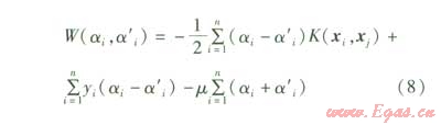 根據支持向理機理論,該非線性函數關系可以用支持向量機對前i-1天實測數據的學習來獲得,其回歸計算公式為: