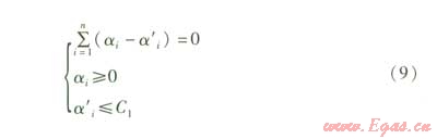 式(7)中的參數αi,α'i,p通過解下面的二次優(yōu)化問題獲得,優(yōu)化的目標函數為:
