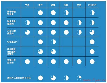 這些趨勢(shì)將對(duì)公用事業(yè)行業(yè)的各個(gè)方面造成怎樣程度的影響,下圖做出了簡(jiǎn)要展示[2]: