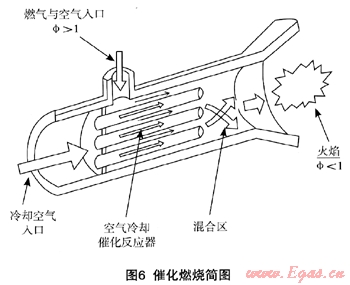 ,一次空氣系數(shù)α<1為富氣,過??諝庀禂?shù)α>1為貧氣。 上述擴散火焰燃燒和貧預(yù)混燃燒的特點是:在擴散火焰燃燒中,燃氣和空氣是由分離的通道導(dǎo)入。燃氣和空氣流混合處的火焰是穩(wěn)定的,在接近Φ=1(或α=1)時,燃燒進行得十分迅速,火焰溫度很高,在空氣中足以形成N0x。但貧預(yù)混式燃燒是燃氣與壓縮空氣預(yù)先混合,過??諝饨档土嘶鹧鏈囟龋强梢员苊鉄酦0x的形成。但燃燒室應(yīng)在當(dāng)量比Φ很小的范圍內(nèi)操作,避免Φ<0.5(α>2)時的熄火和Φ>0.6(α<1.6)時NOx的形成。