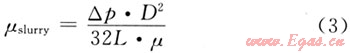 假設(shè)在本實(shí)驗(yàn)的流動(dòng)中,天然氣水合物顆粒是均勻分布的,并且流動(dòng)處于層流區(qū)域,通過觀察實(shí)驗(yàn)過程中流量和所測(cè)得的壓降,就可以利用圓管層流里的管道壁面剪切力與壓降的關(guān)系求出天然氣水合物漿液的表觀黏度,為: