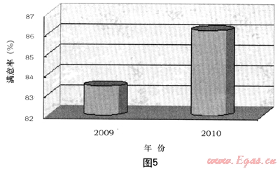 圖5為我公司2009/2010年第三方測(cè)評(píng)抄表業(yè)務(wù)滿意度變化圖。我們從圖5可以看出,自從推廣了一報(bào)一抄抄表模式后,大大減少了入戶次數(shù),抄表擾民系數(shù)降低,得到了廣大用戶的認(rèn)可。由第三方開(kāi)展的客戶滿意度調(diào)查結(jié)果顯示,2010年的抄表業(yè)務(wù)客戶滿意度從2009年的83.42%提升到86.16%,上升近3個(gè)百分點(diǎn)。