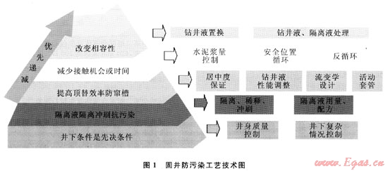 1) 防污染工藝技術的關鍵就是采取一系列的工藝技術措施,“提高頂替效率,防止或減少接觸污染”(圖1)。