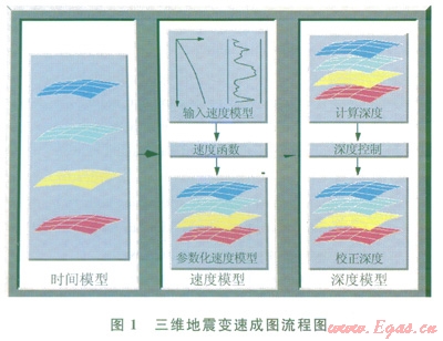 加強(qiáng)三維地震技術(shù)攻關(guān),充分利用三維資料優(yōu)勢(shì)開(kāi)展儲(chǔ)層預(yù)測(cè),準(zhǔn)確描述儲(chǔ)層空間展布。在資料處理方面,將疊前時(shí)間偏移技術(shù)[3-4]應(yīng)用于水平層狀地層,為地震精確成像及儲(chǔ)層空間展布預(yù)測(cè)提供了保證,同時(shí)應(yīng)用三維變速成圖技術(shù)(圖1),準(zhǔn)確描述日標(biāo)儲(chǔ)層的微構(gòu)造特征。在資料解釋方面[5],以疊前反演為主要技術(shù)手段,識(shí)別目標(biāo)層砂體及有效儲(chǔ)層,采用可視化技術(shù)有效指導(dǎo)水平井位部署。
