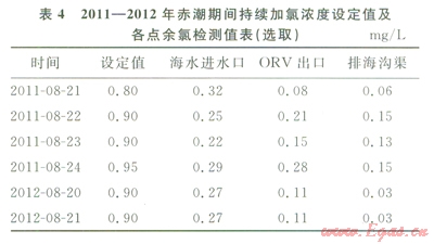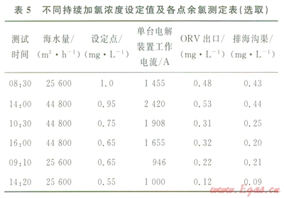 2)海水余氯濃度處于設(shè)備長期運行所能承受的范圍內(nèi)。