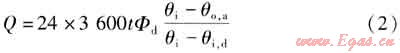 供暖期的供熱量Q的計(jì)算式為: