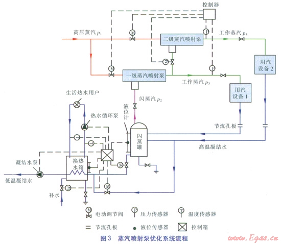 由于采用兩級(jí)蒸汽噴射泵,可以滿足不同壓力等級(jí)用汽設(shè)備的需求,提高了系統(tǒng)的適用性。
