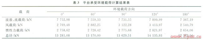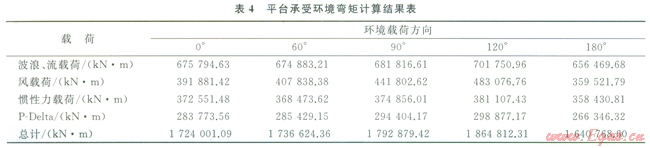 3、4分別為平臺(tái)在該海域所受到各方向環(huán)境載荷、彎矩計(jì)算結(jié)果。