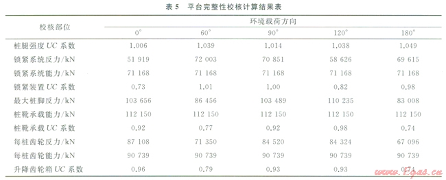 運(yùn)用本文闡述方法進(jìn)行綜合校核評(píng)估的結(jié)果:該型平臺(tái)可在該海域環(huán)境參數(shù)條件下進(jìn)行生產(chǎn)作業(yè)。