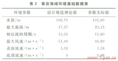 對(duì)比表2中數(shù)據(jù),得知該海域的最大浪高、表面和底部流速等環(huán)境參數(shù)數(shù)值已超過平臺(tái)操船手冊(cè)[12]規(guī)范的數(shù)值,因而在正常條件下,該型平臺(tái)不能在該海域進(jìn)行生產(chǎn)作業(yè)。