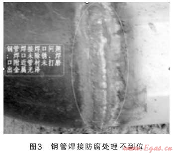 1)由于鋼管施工不遵守操作規(guī)程,在管道防腐或下管時已產(chǎn)生防腐層損壞,外防腐層起不到應有的保護作用,致使管道產(chǎn)生外腐蝕穿孔;