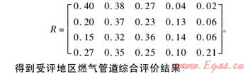 其次,綜合考慮影響管道失效的所有因素進(jìn)行二級(jí)模糊綜合評(píng)判確定管段的風(fēng)險(xiǎn)等級(jí),根據(jù)對(duì)各因素的等級(jí)計(jì)算得出模糊綜合評(píng)價(jià)集合R