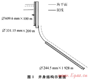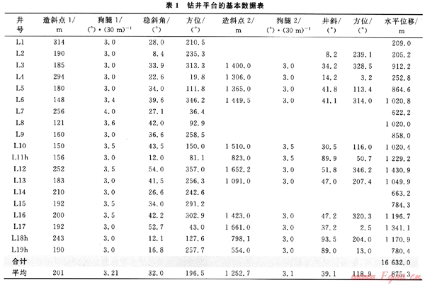 BH36油氣田經(jīng)過10多年的開發(fā)[1],已經(jīng)形成了一套海上叢式井鉆井技術(shù)體系[2~3]且逐漸步入開發(fā)的中后期,為有效提高剩余油氣的動用程度,提高采收率,通過實施細致的油氣藏工程分析,決定在原來350m×350m的開發(fā)井網(wǎng)中實施排狀加密。井口間距2.0m×2.0m,每個鉆井平臺總井?dāng)?shù)為16口,控制含油氣面積大約2km2,該油氣田垂深平均為1600m,平均井深在2000m左右。不難看出,在原井網(wǎng)中鉆再加密井網(wǎng)進行調(diào)整是海上油氣田開發(fā)所面臨的新課題。該區(qū)的井身結(jié)構(gòu)如圖1所示,平臺的基本數(shù)據(jù)如表1所示。