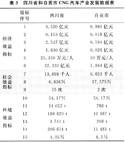 四川省和自貢市CNG汽車產(chǎn)業(yè)發(fā)展數(shù)據(jù)見表3。