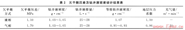 2.1.2充氣欠平衡壓差及鉆井液密度設(shè)計(jì)