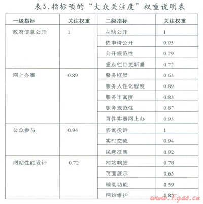 2)社會各階層很少注意的項目,例如監(jiān)督管理、在線受理、專題欄目等,雖然也十分重要,但其權(quán)重應(yīng)該與其他重點(diǎn)指標(biāo)有差距,才能體現(xiàn)評估的公正性;