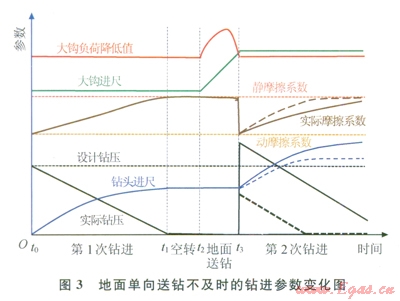 2.1.1.2地面送鉆及時(shí)鉆進(jìn)參數(shù)變化規(guī)律