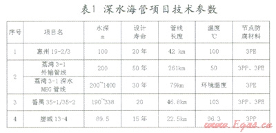 管道運(yùn)輸是油氣運(yùn)輸?shù)闹饕椒ㄖ?,具有連續(xù)、快捷、安全、經(jīng)濟(jì)的特點(diǎn)。隨著海上油氣田的不斷開(kāi)發(fā),管道運(yùn)輸工藝被廣泛應(yīng)用,它將海上油氣田、儲(chǔ)運(yùn)設(shè)施或陸上處理終端連接成一個(gè)有機(jī)的整體,形成相互關(guān)聯(lián)相互協(xié)調(diào)的生產(chǎn)操作系統(tǒng)。深水油氣資源一般遠(yuǎn)離陸地,不但開(kāi)發(fā)成本高而且維修非常困難,為了提高經(jīng)濟(jì)性一般深水海底管線的設(shè)計(jì)壽命都比較長(zhǎng),對(duì)防腐要求較高。