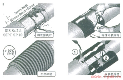 海管鋪設(shè)需要使用鋪管船等大型設(shè)備,費(fèi)用非常高。為了控制施工成本必須盡可能縮短節(jié)點(diǎn)防腐的施工時(shí)間。熱縮帶的施工非常方便,是目前使用最廣泛的海管節(jié)點(diǎn)防腐材料。