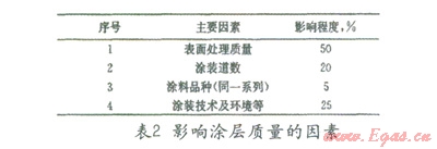 表面處理的好壞對(duì)涂層質(zhì)量影響很大,有學(xué)者研究過(guò)影響涂層質(zhì)量和壽命的各種因素,結(jié)果如表5所示[1],顯然表面處理的質(zhì)量是對(duì)涂裝質(zhì)量影響最大的因素。在海管節(jié)點(diǎn)的防腐施工中表面處理也非常關(guān)鍵,為了保證防腐效果必須對(duì)鋼表面進(jìn)行噴砂處理,達(dá)NSa2.5級(jí)以上。