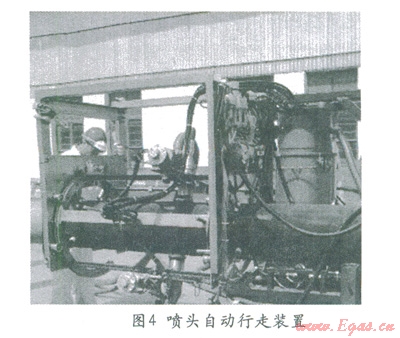 噴砂施工會(huì)造成大量的磨料飛濺和粉塵飛揚(yáng),造成嚴(yán)重的環(huán)境污染,一般鋼結(jié)構(gòu)的噴砂施工必須在封閉的廠房或者大棚內(nèi)進(jìn)行。而海管節(jié)點(diǎn)噴砂作業(yè)只能在鋪管船的作業(yè)線內(nèi)進(jìn)行,不但空間小而且布置著各種設(shè)備,人員眾多,無(wú)法使用常規(guī)方法進(jìn)行。所以必須使用專用的噴砂設(shè)備。我公司使用的是真空噴砂機(jī)配合噴頭自動(dòng)行走裝置。真空噴砂機(jī)是一種能夠?qū)崿F(xiàn)磨料自動(dòng)回收的噴砂機(jī),施工時(shí)噴頭與鋼材表面接觸形成密閉空間,鋼表面反射的磨料和灰塵等被吸入噴砂機(jī),對(duì)周圍環(huán)境污染小。噴頭自動(dòng)行走裝置能夠?qū)⒄婵諊娚皺C(jī)的噴頭固定在海管節(jié)點(diǎn)表面,按照一定速度移動(dòng),保證噴砂質(zhì)量的同時(shí)快速的完成整個(gè)節(jié)點(diǎn)表面的噴砂施工。