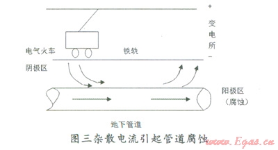 2)雜散電流。所謂雜散電流是指沿規(guī)定回流以外流動的電流。雜散電流流出的地方成為腐蝕電池的陽極區(qū),腐蝕破壞就發(fā)生在這個地方,金屬損失量與流過的雜散電流的電量成正比,符合法拉第定律,即一安培電流流過一年就相當(dāng)于約九公斤的鐵發(fā)生電化學(xué)腐蝕而溶解掉了,可見雜散電流引起的腐蝕是相當(dāng)嚴(yán)重的。