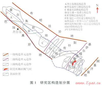 別什旨特坳陷東南部為基薩爾褶皺隆起區(qū),是阿姆河盆地的邊緣造山帶,與阿富汗—塔吉克盆地相接,呈復式背斜和復式向斜的構造格局。隆起區(qū)具有正地貌特征,其山系海拔介于600~l000m,出露古生代基底,隆起區(qū)向盆地內(nèi)部傾沒部位則與負向地貌一致,地表出露的地層較新?;_爾隆起區(qū)可以進一步分為3個逆掩斷裂背斜帶,即阿克庫姆拉姆高爾達克構造帶、加拉恰加特構造帶、庫基坦格構造帶。