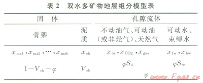 假設(shè)組分不動油、可動油(或非烴氣)、可動水、束縛水、天然氣、泥質(zhì)以及巖石的各種骨架礦物在地層中的相對含量分別為:xor,xco2,xfw,xbw,xgas,xsh,xmal,xma2,…,xmak則有如下關(guān)系式。