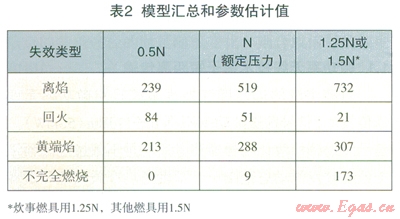 本文限于篇幅,對每一互換性指數(shù),只能介紹少量的實驗數(shù)據(jù)。即使如此,也可看出實驗數(shù)據(jù)的離散性很大。究其原因,實與原始的調(diào)定情況有一定的關(guān)系。同一燃具,調(diào)定人員的調(diào)定尺度本身就具有一定的隨機性。稍有實驗室工作經(jīng)驗的人對此都有體會,更何況研究所針對的是要滿足全部各類燃具的要求,而不是某一種燃具。當前天然氣民用炊事燃具在用戶的使用中,由于廚房條件的千差萬別,最易出現(xiàn)的是黃焰端問題,遺憾的是多年來并未引起重視,如表2所示,失效也與燃具的試驗壓力有關(guān)。用戶處在管網(wǎng)不同的聯(lián)接位置,對試驗結(jié)果也有影響。