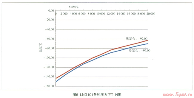在特定壓力下,利用根據(jù)圖l建立的系統(tǒng)模型對(duì)煤層氣從初溫-40℃冷卻至-l40℃的過程中對(duì)煤層氣的T-H進(jìn)行模擬計(jì)算,結(jié)果詳見表2。
