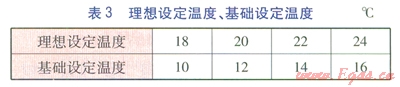 選取房間1作為研究對(duì)象,選取2月16日作為典型日,設(shè)定用戶(hù)在8:00將溫控閥調(diào)低,17:00將溫控閥調(diào)高。筆者根據(jù)用戶(hù)生活習(xí)慣、收入水平等情況,篩選出幾種理想設(shè)定溫度、基礎(chǔ)設(shè)定溫度,見(jiàn)表3。