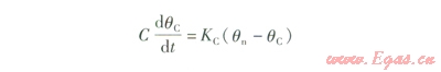 根據(jù)供暖房間熱平衡方程,考慮干擾量對(duì)室內(nèi)溫度的影響,建立溫控閥調(diào)節(jié)條件下室內(nèi)溫度數(shù)學(xué)模型。當(dāng)室內(nèi)溫度改變時(shí),內(nèi)圍護(hù)結(jié)構(gòu)內(nèi)部溫度場(chǎng)很復(fù)雜。為簡(jiǎn)化計(jì)算,以集總熱容的方法對(duì)內(nèi)圍護(hù)結(jié)構(gòu)的溫度場(chǎng)進(jìn)行簡(jiǎn)化,引入內(nèi)圍護(hù)結(jié)構(gòu)熱容平均溫度的概念,可以用下式表示: