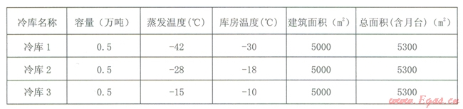 為便于計算,本文以總?cè)萘繛?span lang="EN-US">1.5萬噸的冷庫為例進行具體計算,并將此冷庫設(shè)計成三座庫容量均為5000噸庫房溫度分別為30℃、-l8℃、-l0℃的冷庫。根據(jù)蒸發(fā)溫度與庫房溫度的關(guān)系,三座冷庫的蒸發(fā)溫度分別為-42℃、-28℃和-l5℃。其基本設(shè)計參數(shù)如表l。