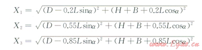 假設(shè)該目標(biāo)物距高架火炬筒體水平距離為D,該目標(biāo)物接收的熱輻射通量需疊加3個(gè)輻射點(diǎn)源在該目標(biāo)點(diǎn)產(chǎn)生的總輻射熱通量(q),即