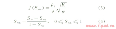 J函數(shù)法是以壓汞數(shù)據(jù)為基礎(chǔ),針對巖石孔喉特征進(jìn)行研究的方法。因為實驗室測定的小尺寸巖樣的毛細(xì)管壓力曲線只能代表氣層中的一個點,而要得到能夠表征整個氣層的毛細(xì)管壓力曲線,就必須將獲得的所有毛細(xì)管壓力資料綜合平均。為此,Leverett提出了“J”函數(shù)的概念和汁算公式: