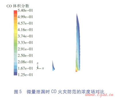 C0是CRG的主要叮燃組分,在12.5%~74.0%的爆炸極限范圍內均可燃,且其密度與空氣相近,泄漏后較難快速散失,會混入地面空氣中產(chǎn)生橫向蔓延,因此研究考慮的C0防火控制體積分數(shù)取其爆炸下限l2.5%,即低于該含量均屬安全。
