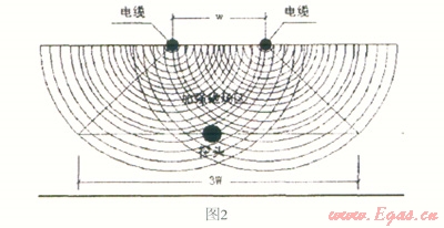 采用人工磁場,即在穿越中心線兩側(cè)布設的閉合線圈,這樣所布線圈不受外部磁場的干擾,可以準確無誤的將鉆孔數(shù)據(jù)反映出來,當探頭到達此閉合的線圈區(qū)域內(nèi),接通直流電源產(chǎn)生磁場,通過人工磁場可以測得穿越軸線的左右偏移和穿越標高(如圖2,W為單位寬度)。由于人工磁場受干擾較小,可以提供準確的管線穿越方位角,從而能夠很好的控制導向孔與設計穿越曲線偏移,并能保證穿越曲線的平滑性。