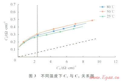 由式(3)得到25℃時(shí)的Cw為69.8(W·cm)-1,遠(yuǎn)大于2.5(W·cm)-1的界限,再次證明臺(tái)南氣田的黏土附加導(dǎo)電作用是可以忽略的。同時(shí)也說明,該地區(qū)地層水礦化度較高,是造成電阻率絕對(duì)值低的主要原因之一。